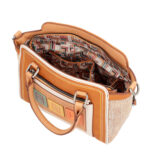 Пътуваме до сърцето на тропическите гори на Амазонка до Menire, местните жени, с Anekke и тази чанта с къса дръжка от линията Magic Souls. Предната част на чантата с дръжка, изработена от гладка изкуствена кожа, е украсена с цветна бродерия. Това има за цел да изрази връзката между духовността и занаятите.