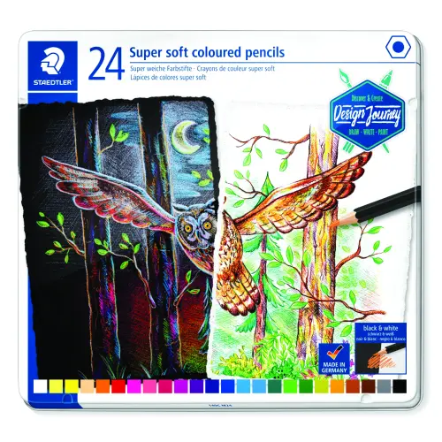 Цветни моливи Staedtler Design Journey super soft, 24 цвята, метална кутия
