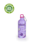 Стоманена бутилка за вода BPA FREE, изработена от материал несъдържащ PVC, винтово затваряне с карабинер за закачане.