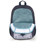 Ученическа раница с 3 отделения. Ергономичен мрежест гръб. Подплатени и подсилени раменни подложки. Подплатена основа с подсилен пластмасов протектор (антибактериален, водоустойчив и може да се пере). Регулируем колан за гърдите. Включва етикет с име и органайзер. Джоб от външната страна. Капацитет на лаптоп 14“. Изработен от материал без PVC, с висококачествена материя с висока плътност.